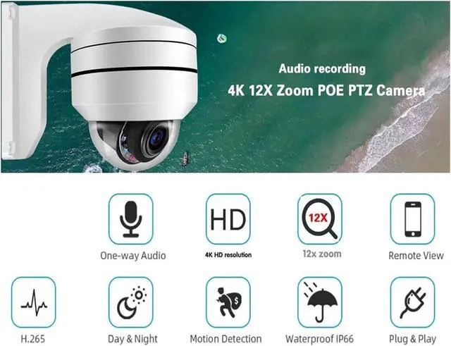 8MP 4K Ultra HD Quality + 12x Optical Zoom: Equipped with a metal pan-tilt unit, capable of 355° horizontal and 90° vertical rotation, combined with 12x optical zoom and 80-meter infrared night vision, it can clearly capture details from distant scenes and dynamic scenes at night, meeting the monitoring needs of various scenarios such as homes and supermarkets.