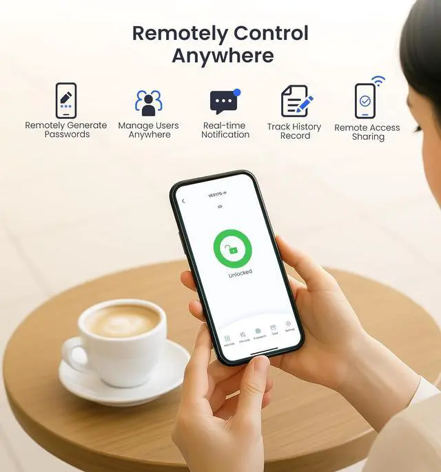 Smart Wi-Fi Control, Anytime Anywhere: Enable remote lock/unlock, create and share passwords, get real-time notifications, check lock status, manage users, and view instant activity logstotally control the WiFi lock on the KK Home App, wherever you are