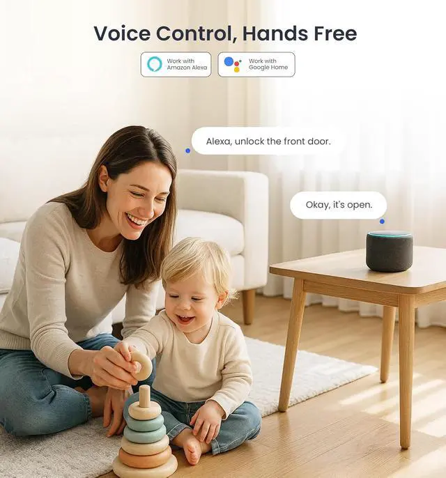 Voice Control, Hands Off: This wifi door lock with handle works with Amazon Alexa & Google Home. Control your door lock with simple voice commands and enjoy seamless smart home integration for a truly connected living experience