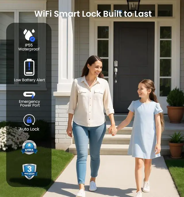 Peak Safety, Total Assurance: The lock is tested by ANSI Grade 3 and BHMA for reliable protection. Remotely delete code anytime and get an instant alert, preventing unauthorized access. An emergency power on port ensures youre never locked out