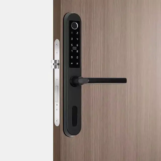 Compact size, Wide application : Accept door thickness: 1.2-2.4inches/ 35-60mm, the provided lock body size is shown in the picture. The compact size fits most of wooden and metal doors.With simple door handle setting, this smart lock is suitable for various scene: Office, Apartments, Hotel, Home & etc. Our smart lock is made of aluminum alloy, which is hard, durable, waterproof, and heat-resistant. No need to worry about wind and rain, it is also suitable for outdoor use.