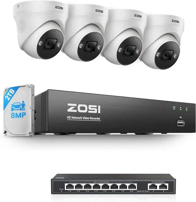 Two Way Audio & Remote Access: The PoE IP camera Built-in mic and speaker let you stay in touch with your household. So you can talk to your kids or tell your dog to stop barking, or say hello to the delivery man through the Free Zosi Smart App. Free app for live view & Playback on Mobile Phone with Wi-Fi anywhere anytime.