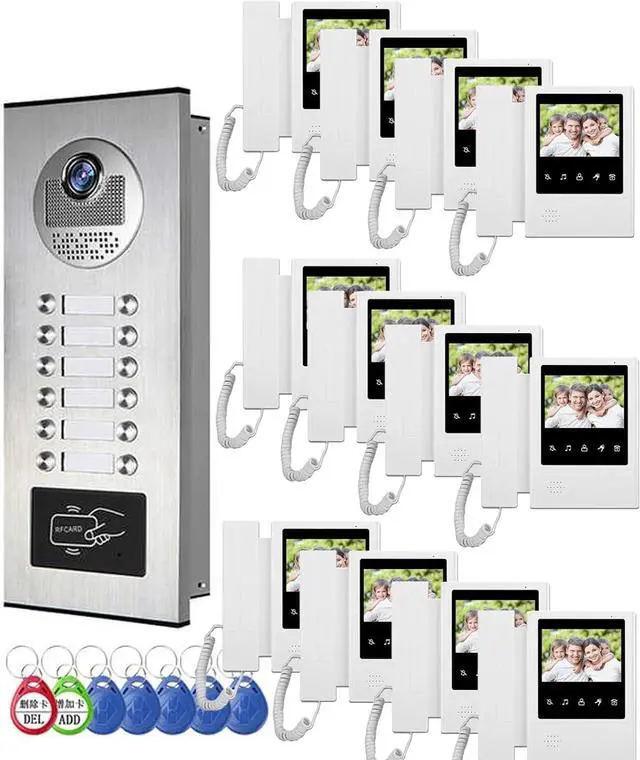 6 UNIT DESIGN: 1 outdoor camera and 6 indoor screens for visual intercom doorbell system, supports six occupants in one building. Individual monitors without interfering with each other