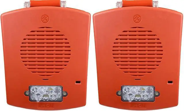 EL4XSPST-FR Pack of 2 Outdoor 4X Speaker Strobes, Red; Clear Lens; FIRE Lettering; Sleek, Modern Aesthetics with No Visible Mounting Screws; 76-94 dBA Sound Level; Depending On Setting