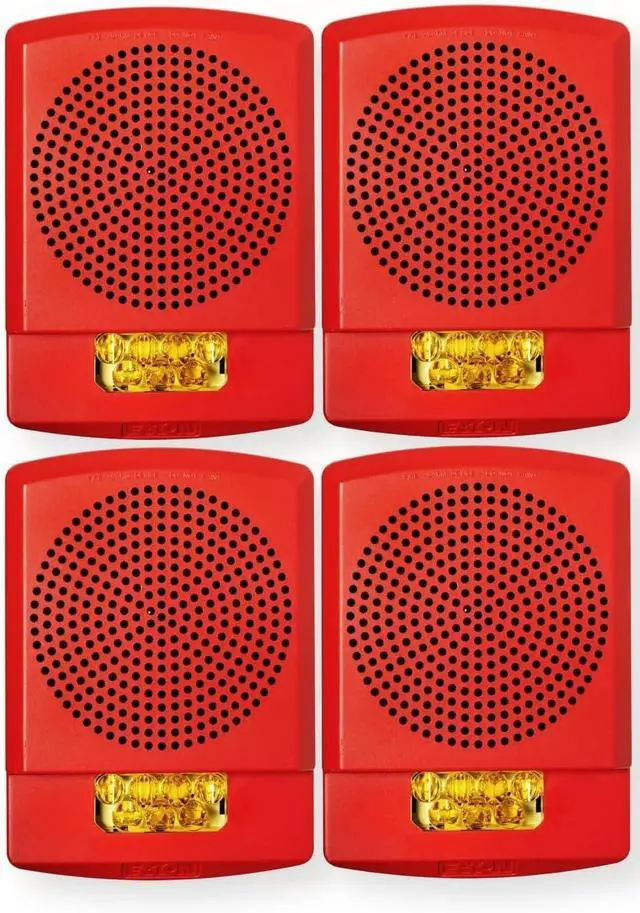 ELSPSTR-NA Pack of 4 High-Fidelity Speaker Strobes, Red; No Lettering; Amber Lens; LED; Wall Mounting; 1/8W Up to 2W (5W 70V), 25 or 70 VRMS Operation; Indoor; 15/30/75/110/135/185 cd