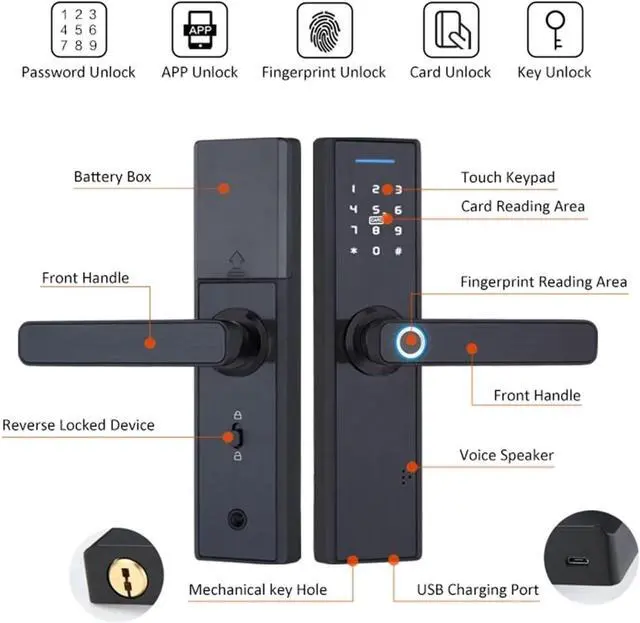 Efficient fingerprint recognition: Use advanced fingerprint recognition technology to unlock quickly and accurately, avoid security risks caused by password disclosure or key loss, and provide additional security for home and office environments.