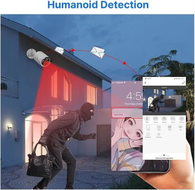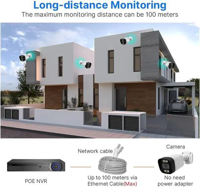 This surveillance camera system provides ultra-clear picture quality up to 4K (8MP), allowing you to see every detail clearly, whether you are monitoring at night or shooting during the day. Even long-distance facial features, license plate numbers, and even small objects can be accurately captured. User John shared: "The system I installed is so much clearer than what I have used before, I can even see the expression on the face of the doorbell in the distance, it is so professional."