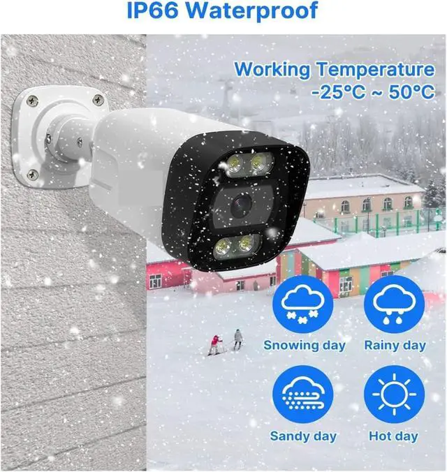 The IP66 waterproof camera is designed for outdoor environments and can withstand severe weather conditions such as heavy rain, snow or extreme heat. Whether installed in front of the house, in the backyard or by the driveway, it operates stably and provides security around the clock. User Mark commented: "Don't worry about rainy or snowy days, the camera still works smoothly and can be installed outdoors without any problems."