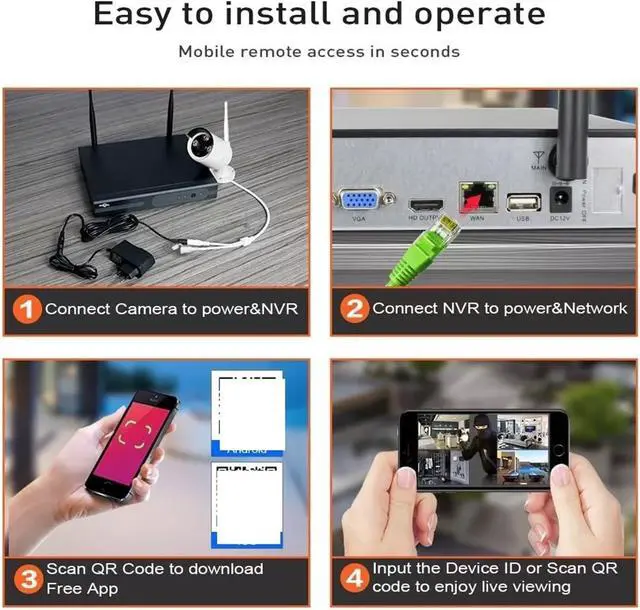 Say goodbye to tedious cabling, WiFi wireless connection makes installation easier and more flexible. No need to worry about the complex wiring problems of traditional surveillance systems, this camera system easily connects to your home or office network and gets to work quickly, saving a lot of time and effort.