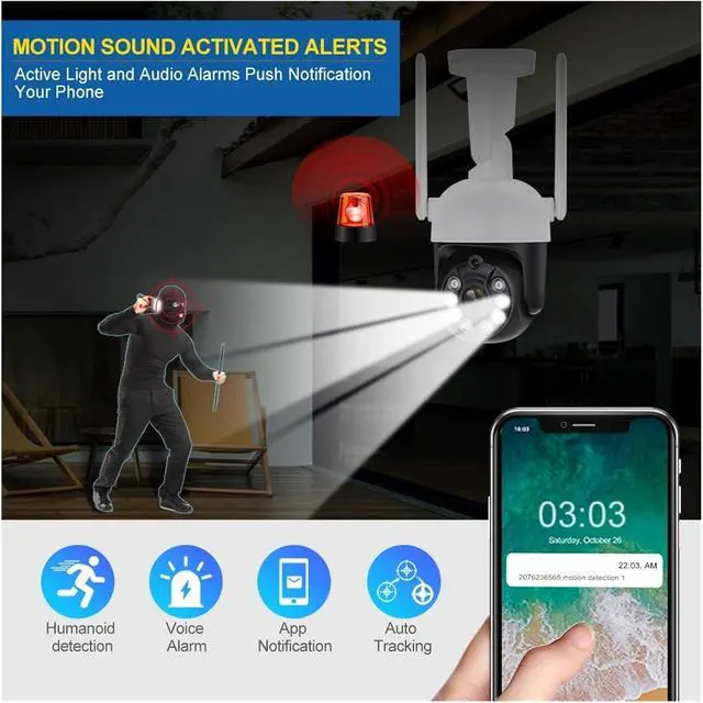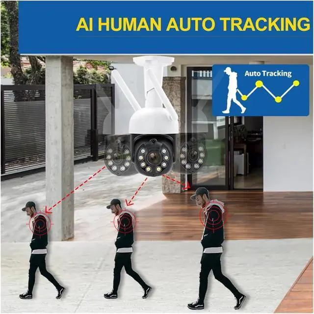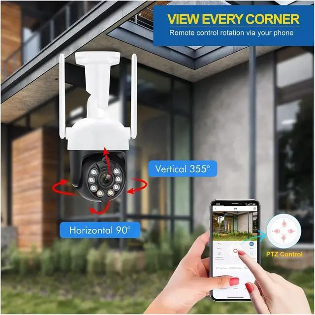 Equipped with PTZ (head head) function, this surveillance camera can rotate 360° horizontally and 90° vertically for full real-time monitoring, ensuring that there are no dead ends to protect your home or business premises. Whether you want to view a corner of the yard or monitor the movement of the driveway, the PTZ head can easily meet your needs and keep you in control of the security situation.
