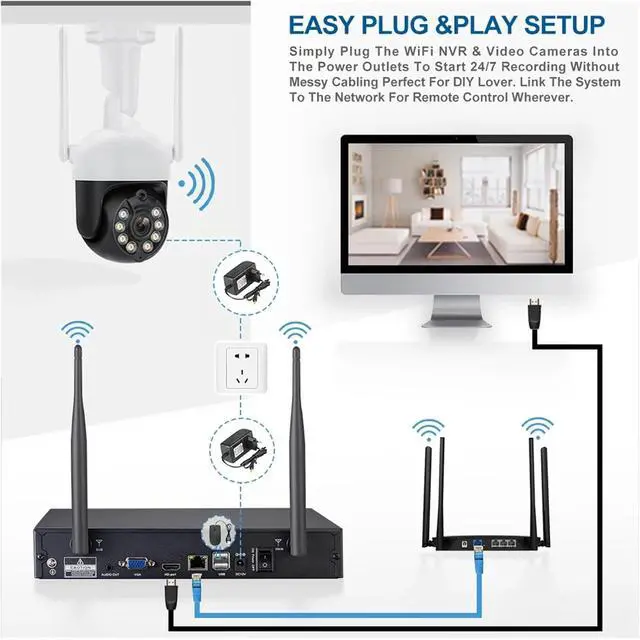 This monitoring system supports WIFI wireless connectivity and eliminates the need for complex wiring and cables, making the installation process simple and fast. Remote setup via the mobile app, whether you live in a high-rise apartment or a detached villa, you can easily complete the installation and setup of the monitoring system, saving a lot of installation time and trouble.