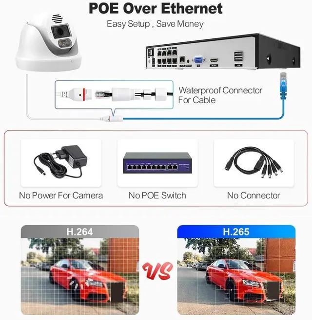 Support POE (Power Over Ethernet) power supply technology, only one network cable can transmit data and power at the same time, greatly simplifying the installation process, reducing the wiring cost, so that you can easily enjoy the convenience and security brought by intelligent monitoring. Compared to other brands, our systems have advantages in ease of installation and intelligence.