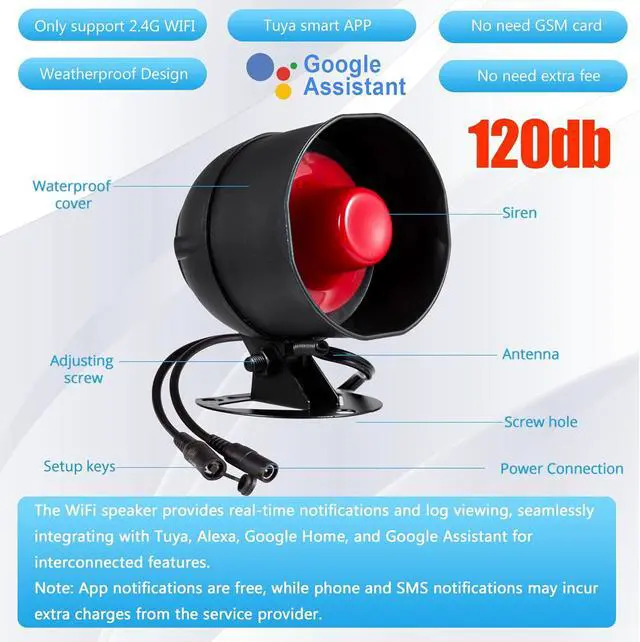 Alarm siren for home security will set off the siren alarm up to 120dB to notify other members at home so that they can get help in time