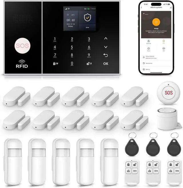 Alarm Compatible with Google, Alexa and TuyaThe home alarm kit does not destroy the decorative style of the house and does not damage the walls; Built-in powerful 32-bit Cortex-M3 based CPU, the home alarm system supports Tuya APP remote control and supports Amazon Anti-theft Alexa, Google Assistant for voice control.