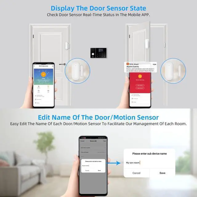 Powerful and Compatible with Other Monitoring AccessoriesWiFi network alarm, support APP Push to ensure stable alarm performance. They are comprehensive and can easily be used at home on the details you want to monitor. you can add door sensor, infrared, buttons and SOS buttons as you like. Support multiple alarm settings such as front door, entrance, emergency, bedroom, window, etc.