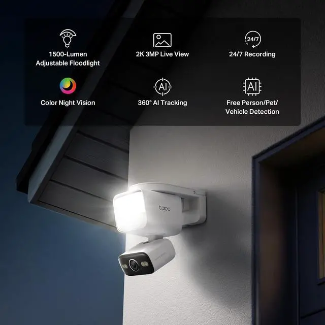SEE CLEARLY, DAY AND NIGHT: The camera offers enhanced video quality with 2K resolution. Enjoy colorful images in low-light conditions at night with bright floodlight.