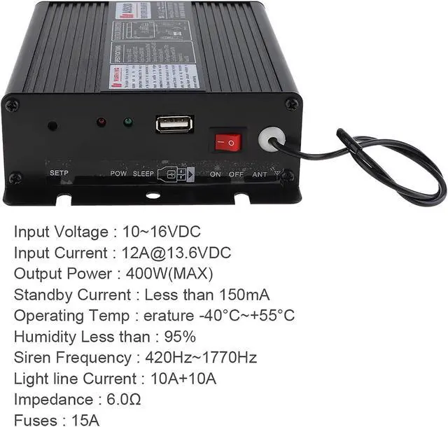 Widely applicable200-watt amplifier and 18-tone hands-free operation, can be covered by the horn ring, rated at 130dB, output power 200W, suitable for all 12V vehicles. Including engineering vehicles, ambulances, fire trucks, private cars, etc.