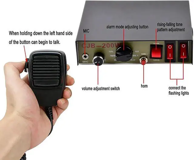 • Emergency Truck HornOur power system is an integrated multi-function alarm system. The siren is equipped with a wired handle and the sound is loud