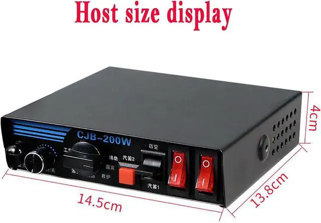 • Widely applicable200-watt amplifier, which can be covered by the speaker ring, rated at 130dB, output power 200W, suitable for all 12V vehicles. Including engineering vehicles, ambulances, fire trucks, private cars, etc.