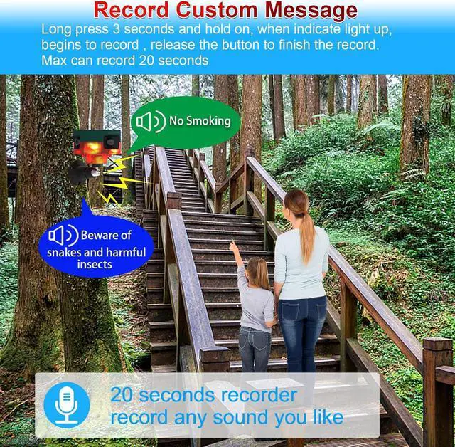 20 Seconds Recording FunctionThe motion activated recordable alarm with built-in microphone, record audio instantly by pressing the record button. Recording time is up to 20 seconds. Every time you do a new recording, it automatically overwrites your old recording. The motion sensor alarm comes with 13 kinds of sound effects.
