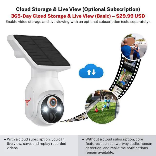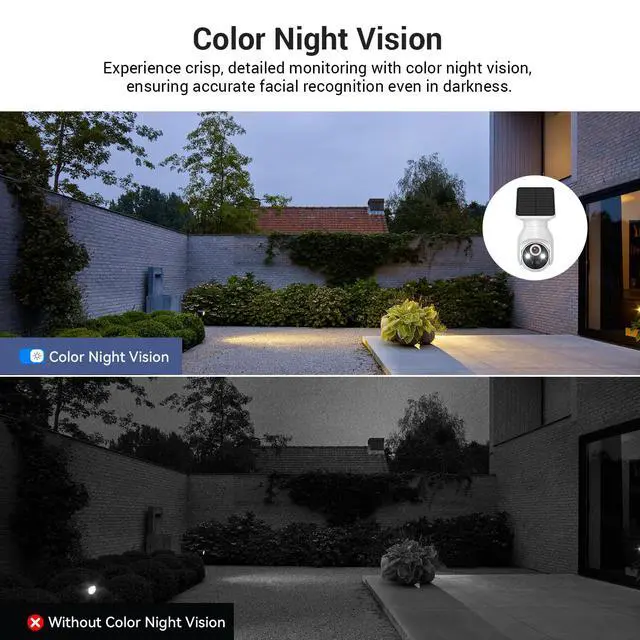 Solar Powered: Equipped with a high-efficiency solar panel, this solar camera security outdoor for home security requires only a few hours of sunlight each day to maintain uninterrupted protection for 365 days.