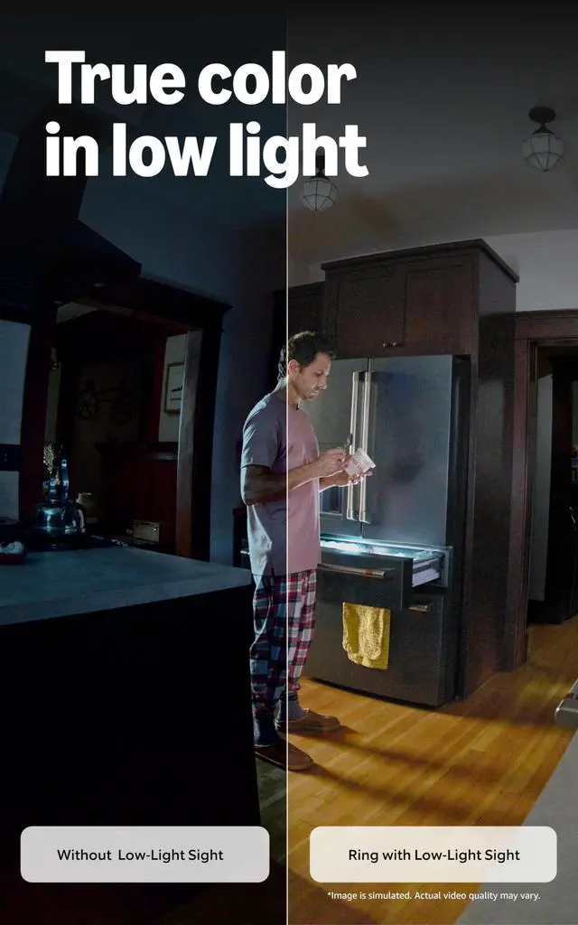 • True color, even in low light With Low-Light Sight, just a little ambient light gives you true color video. In total darkness, your camera switches to crisp black-and-white to keep details sharp.