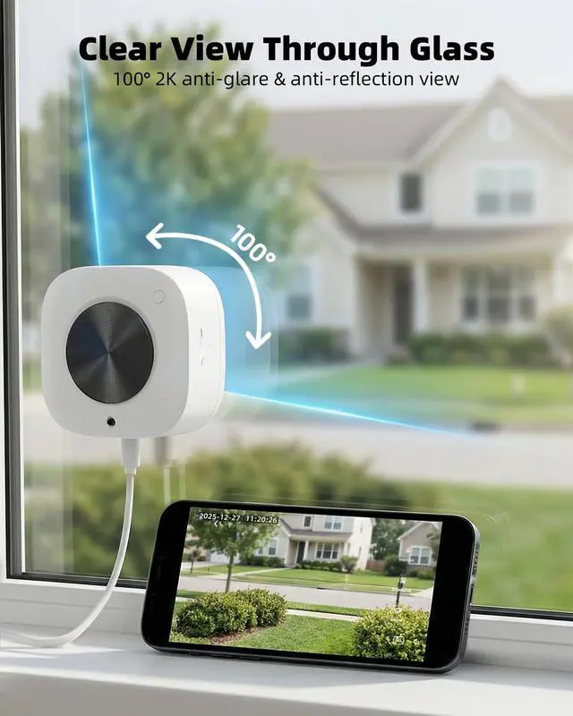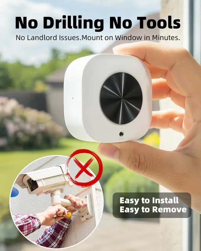 NO-DRILL WINDOW MOUNTING RENTER-FRIENDLY & DAMAGE-FREE Engineered specifically for apartments and rentals where drilling is strictly prohibited. This innovative window camera features a high-strength adhesive mounting systemsimply peel off the protective film and attach the sleek mounting base directly to the glass. No screws, no permanent wall damage, and no complex tools required. Its ultra-slim, low-profile design ensures a discreet appearance for indoor-to-outdoor monitoring, making it the ultimate "Zero-Hassle" security solution for modern renters.