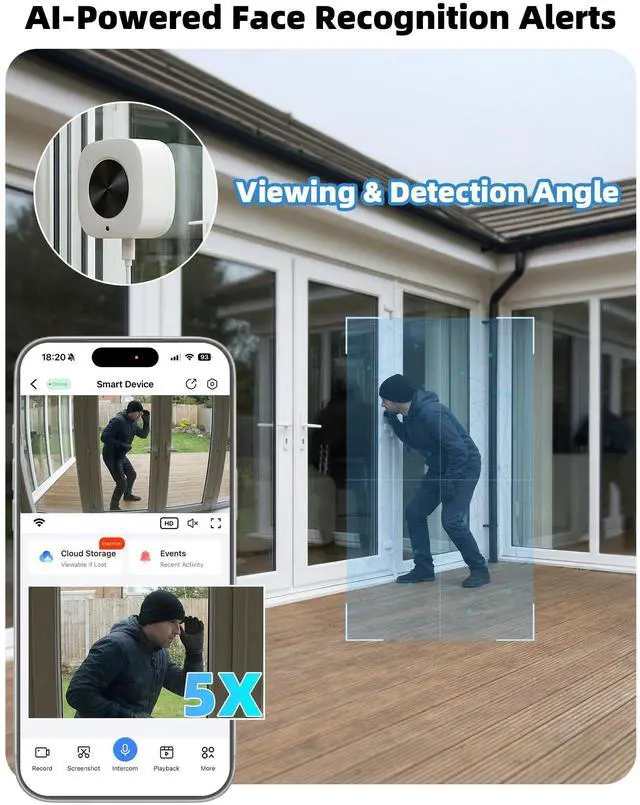 AI Smart Detection Technology: Powered by advanced AI technology, the camera accurately detects people and vehicles, minimizing false alerts caused by shadows or passing lights. Real-time smart notifications keep you informed of important activity as it happens.