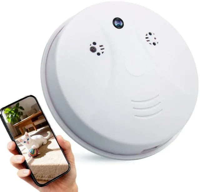 Smoke Detector Hidden Camera Wireless Spy Nanny Cam 1080P FHD WiFi Cameras with Real-Time View Motion Detection Night Vision for Home Indoor Security No Audio