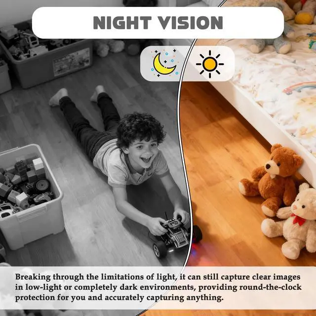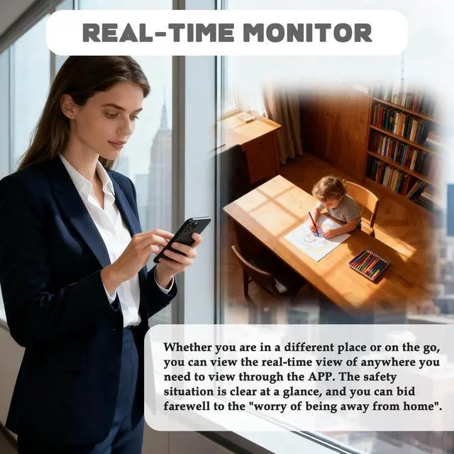 Real-Time Wireless Monitoring: After connecting WiFi, allowing for remote real-time viewing via mobile phone. You can use this nanny cam to keep track of your home dynamics whether you are at home or away, which is convenient and worry-free.