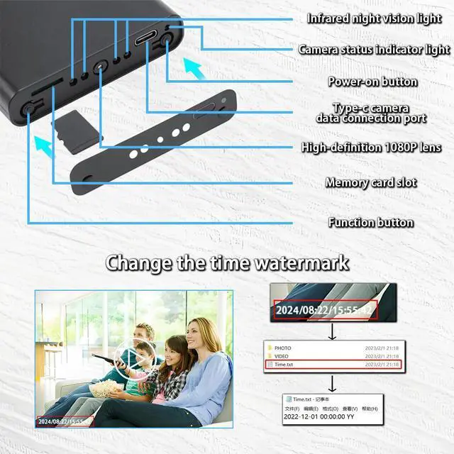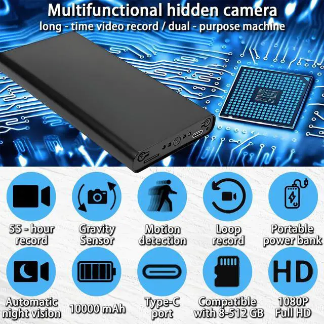 This is a high-definition 1080P security surveillance camera, featuring motion detection, loop record, automatic night vision, and a gravity sensor function. It is compatible with 8G-512G memory cards and has a built-in 10000 capacity, supporting the camera to continuously record videos for up to 55 hours. You can place it anywhere you want.