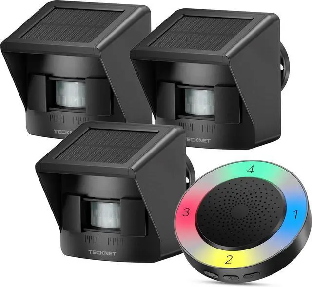 RGB Lighting & Custom Alerts ChimesThe motion detector alarm offers 36 melodies, 5 volumes and 4 ringer alert zones. Different zones can be set to different ringtones, the receiver's multi-colored LEDs provide instant visual alerts when sensors are activated, and custom alerts (gate/driveway/backyard) can be seen and heard with synchronized RGB flashing alerts. You'll know the difference between a delivery driver and a trespasser.