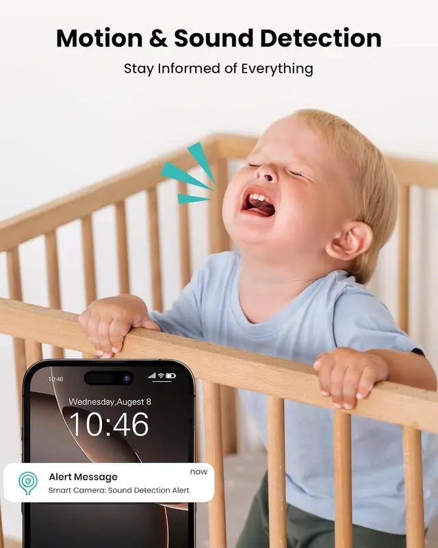 Smart Auto-Tracking & Instant Alerts This intelligent camera automatically detects and follows movement, sending real-time alerts to your phone. Its advanced AI helps distinguish activity, allowing you to watch over your crawling baby or playful pets with precision.