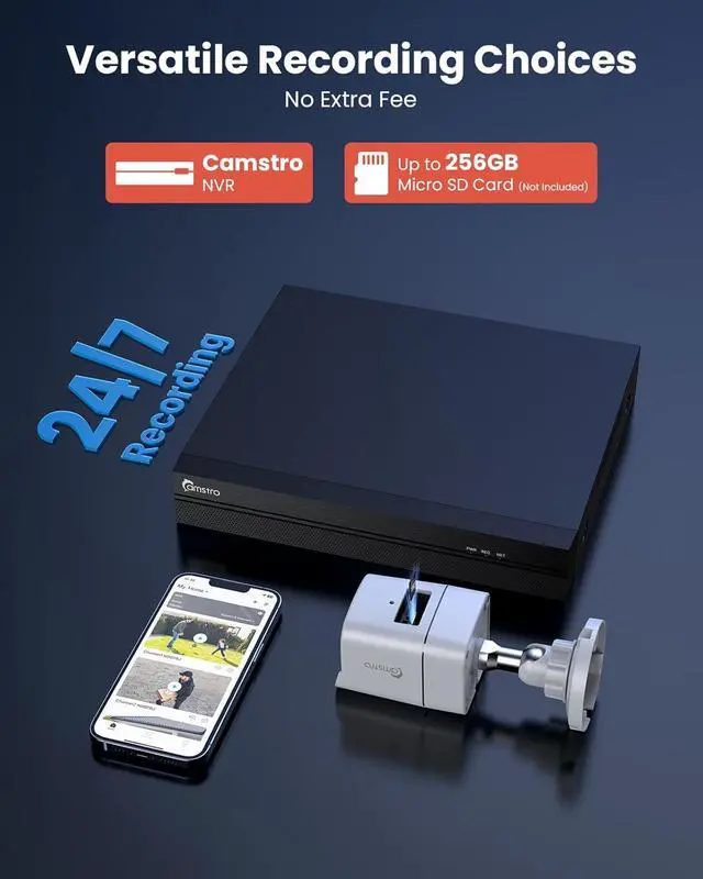 Multiple Storage Options: The wired 4K camera can directly connect to Camstro NVR or the use of built-in card slot for storage, supporting up to a 256GB memory card (not included). Note: cloud storage is currently not an option. If you encounter any problems, please feel free to contact us at any time.