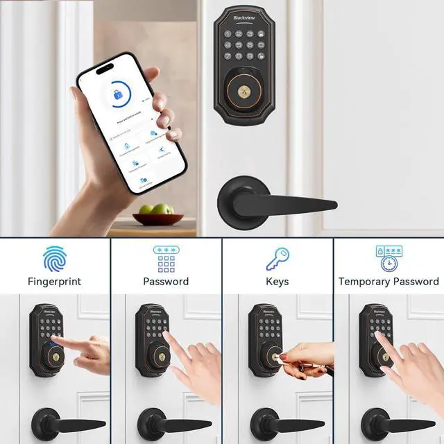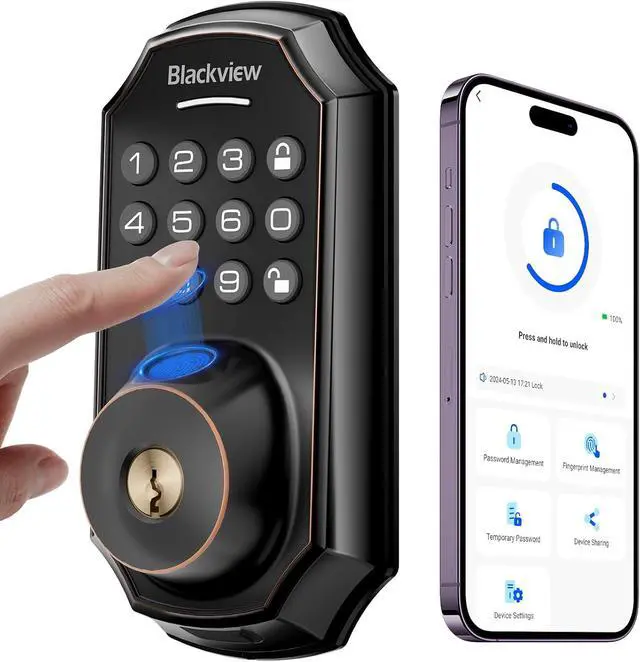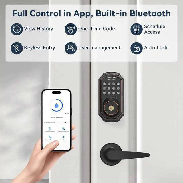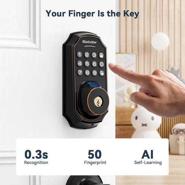 Gone are the days of fumbling for keys. Blackview SE60 smart lock recognizes your fingerprint and unlocks the door in under 2 seconds. Store up to 50 fingerprints in the Blackview Security app for frequent guests or additional finger options for yourself. Never worry about lost, stolen, or copied keys again.