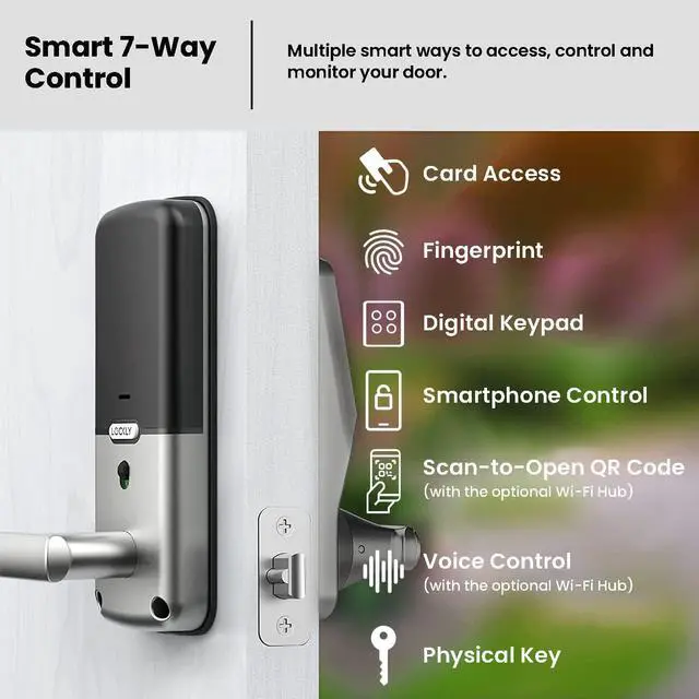 Your Finger is Your Key: Quick access with fingerprint recognition in <0.3sec & lock opening in <0.5sec. Second Gen 3D biometric fingerprint sensor stores up to 99 fingerprints; Mobile App Control: Remotely lock and unlock your door using the Lockly App; Voice Control: Unlock, lock, or check lock status using your voice with Alexa or Hey Google (with the optional Wi-Fi hub).