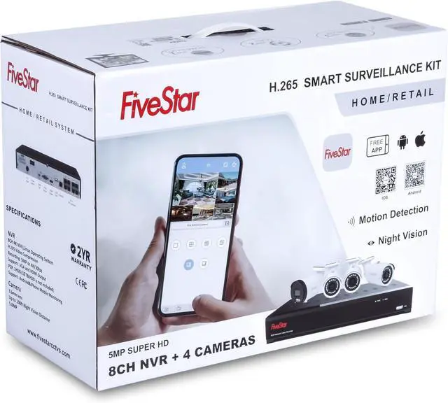5MP Super HD & Stunning Night Vision Capture crystal clear videos day & night with 5MP super HD cameras. The 19pcs infrared LEDs allow you to get high-quality night v
