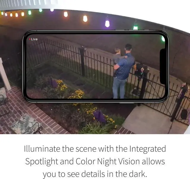 Integrated Spotlight Deters intruders and enhances nighttime visibility.