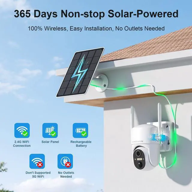 100% Wire Free & Solar Powered design with built-in rechargeable battery for flexible placement anywhere outdoor