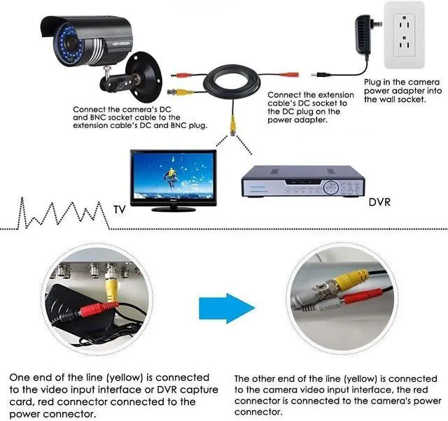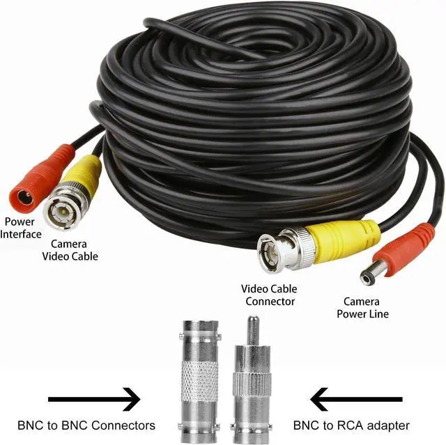 Perfect Kit Design: 4 x100 feet all-in-one video and power security camera cables, includes Complimentary 100 pcs cable clips and 4 BNC to RCA and 4 BNC Female Connectors to can double the connection distance.