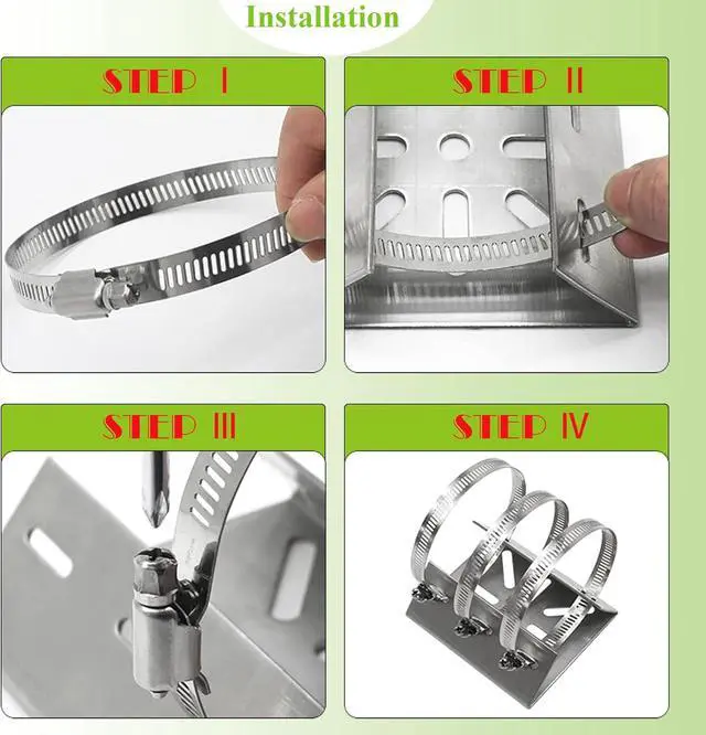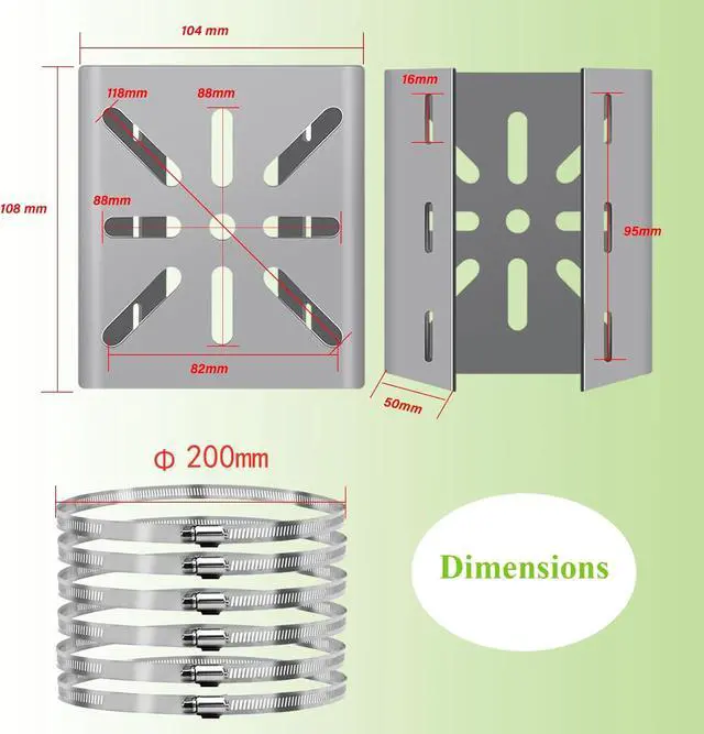 Package Includes: 2 pcs wall mounting bracket +6 pcs loops (Diameter 200 mm). Most poles can be fitted using 4 pcs loops stainless steel loops. We prepare 6 pcs loops for you, it can be fixed tighter or kept as a spare