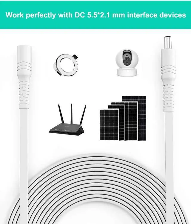 (The New Must-have Camera Cable) Looking to extend the reach of your security cameras but cannot do so because there' s no power outlet nearby? Look no further than this DC 5521 extension cable for security cameras! It' s a game-changer for anyone who wants to maximize their security system coverage without being held back by the scarcity of power supply. (This is a power extension cable with a 5.5 mm * 2.1 mm barrel plug. Refer to the table of common camera cables in the picture to know more. )