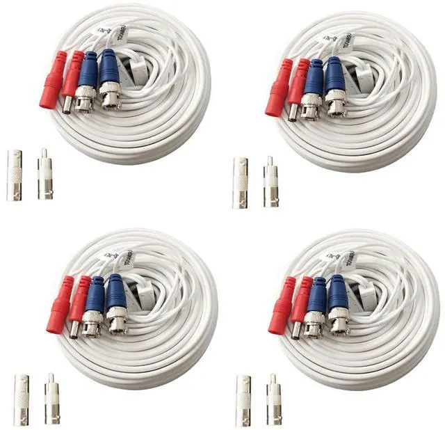 • Package Content: 4 x 100ft cables, 4 x BNC to BNC connectors, 4 x BNC to RCA connectors