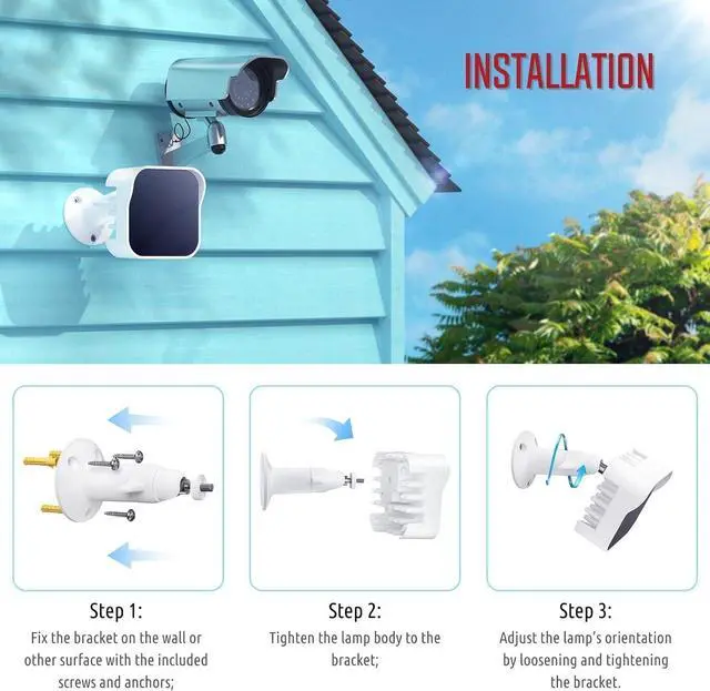 EASY Angle Adjustment - With the new style mounting 360-degree swivel and 90 degree tilting bracket, now you no longer have the trouble in adjusting the lighting angle horizontally. It' s also made of premium aluminum which doesn' t age rapidly under the sun like these plastic types.