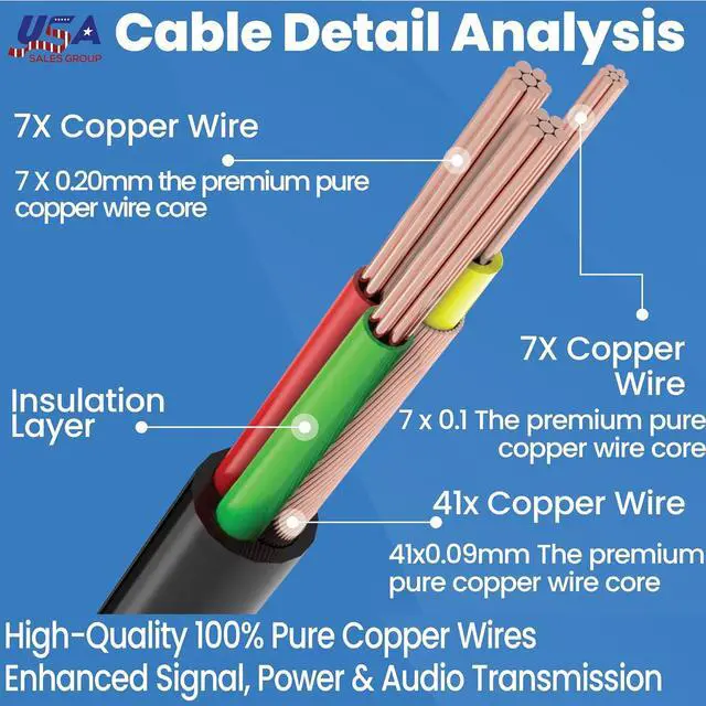 Pure Copper Core for Crystal-Clear Signal Unlike cheaper copper-clad aluminum (CCA) cables, ours features a pure copper core for superior signal transmission and minimal interference. Get clearer audio and sharper video, even over long distances.