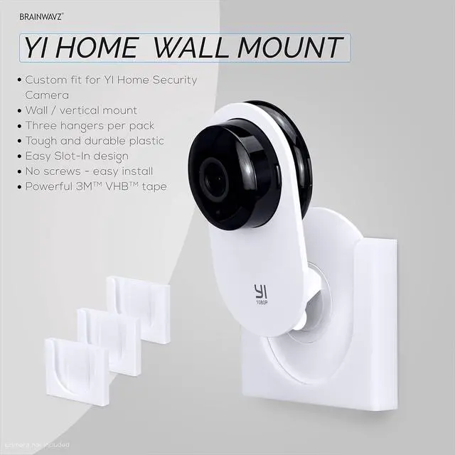 INSTALLED WITHIN A FEW MINUTES: Easy to install wall mount for your YI Home Security camera. Simply remove the safety tape from the back of the holder, and place it in your desired area and position, let it sit there for at least 6 hours then slide your camera.