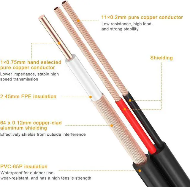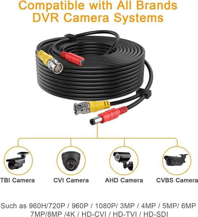 Safe and Rapid Transmission, Heavy-duty quality with copper wire brings the reliable, secure connection and rapid transmission20AWG camera security Cable perfect work with 8mp cameraDurable quality without any interference and quality decrease.