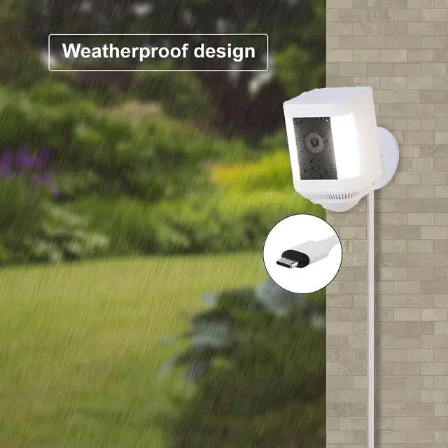 CONSIDERATE DESIGN - Install this power cable with screws to keep it in place to charge your ring camera. And The DC head is with soft waterproof circle to prevent rain from penetrating the charging port, ensures to charge your camera all the time.
