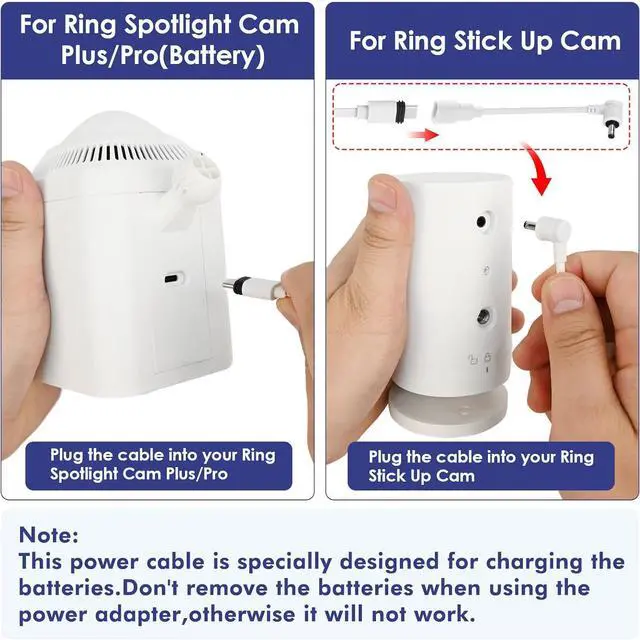 NO NEED TO CHANGE THE BATTERIES - This power cord specially designed for your Ring Spotlight Cam Plus/Pro (Battery) and Ring Spotlight Cam (Battery), makes it easier to charge your camera continuously with no need to change the batteries.