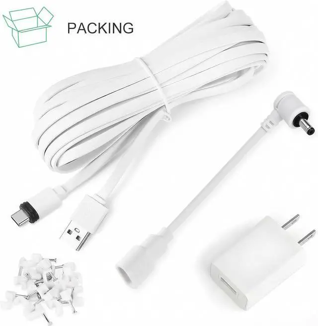 LONG & FLAT CABLE - 25 ft/ 7.5 m long cable makes it possible to connect it to the outlet inside or outside your house. Flat cable can pass through windows or doors without any difficulty to charge your camera.
